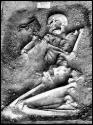 Die Toten sind meist in Flachgräbern als liegende Hocker beigesetzt. Ein solcher Hocker aus dem