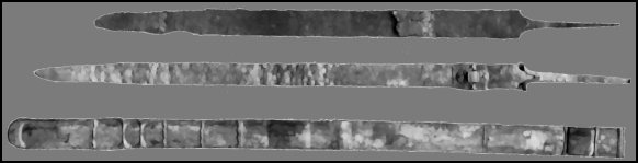gelangt. Die Schwerter, die ausschließlich aus Eisen bestehen, haben lange, schmale Klingen mit